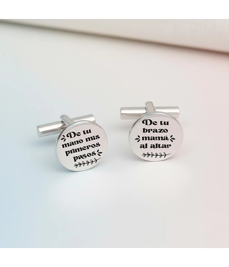 Estos gemelos personalizados de 14 mm en aleación de zamak con baño de plata están diseñados para ser mucho más que un complemento: son un detalle cargado de emoción. En el evento más importante o como regalo inolvidable.