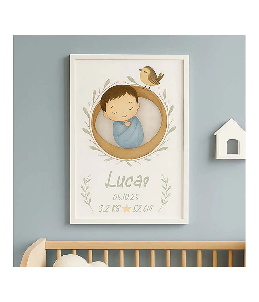 Transforma el momento del nacimiento en una obra de arte que acompañará cada etapa de su vida. Nuestra lámina personalizada natalicia está pensada para capturar esos detalles irrepetibles: nombre, fecha, hora, peso, medidas…