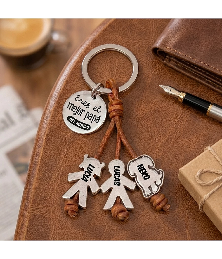 Si dudas siempre de qué regalar, este llavero de cuero personalizado con chapas con forma de niño y niña es otro de nuestros regalos estrella, un llavero totalmente personalizable y resistente que emocionará.