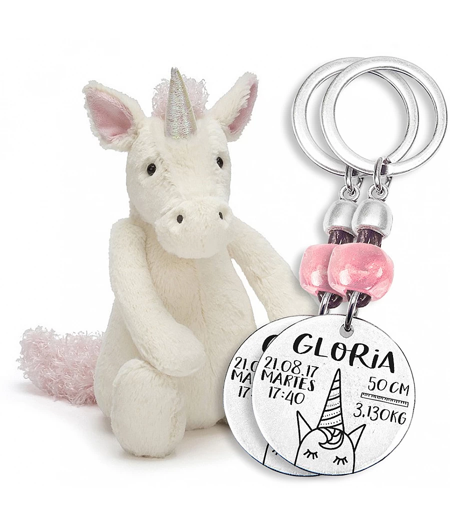 Incluye 2 llaveros personalizados con los datos de tu bebé