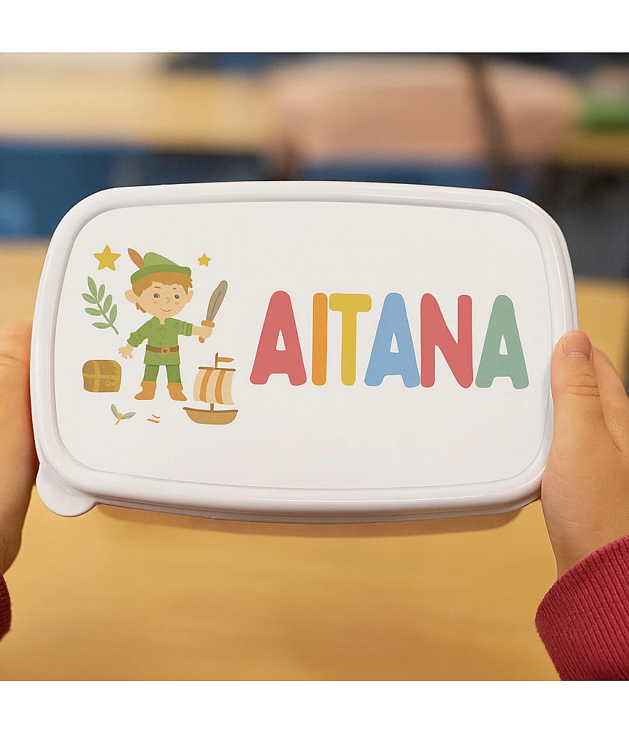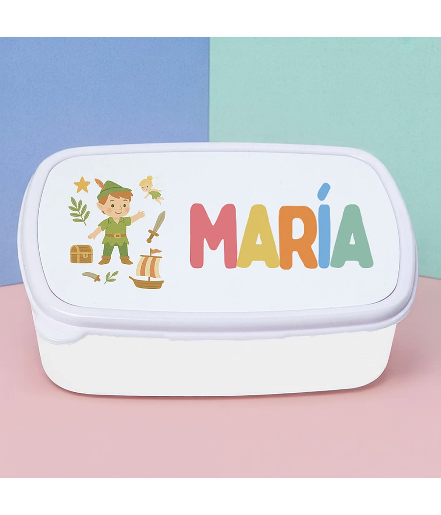 Convierte cada comida en una experiencia especial con nuestra fiambrera infantil personalizada. Con diseño de Peter Pan y el nombre del peque, es perfecta para llevar el almuerzo al cole, de excursión o al parque.