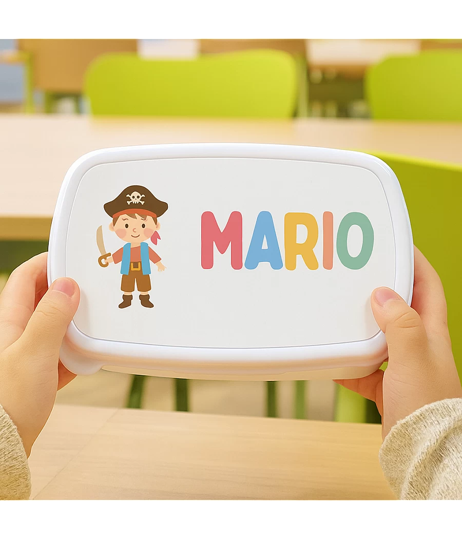 Convierte cada comida en una experiencia especial con nuestra fiambrera infantil personalizada. Con diseño de Pirata y el nombre del peque, es perfecta para llevar el almuerzo al cole, de excursión o al parque.
