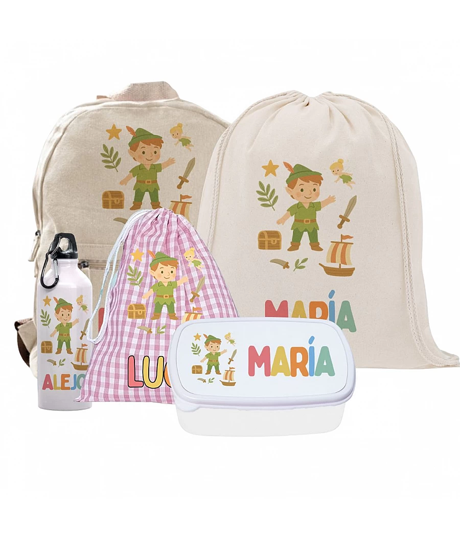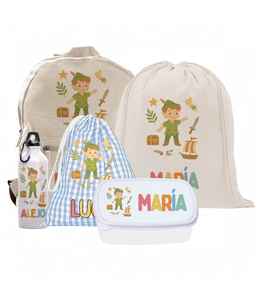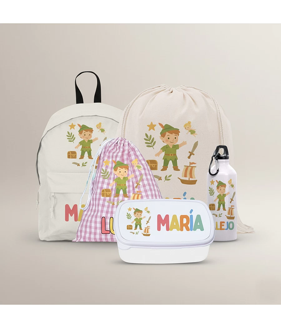 Con este PACK ESPECIAL de Peter Pan, tu peque empezará el cole más preparado/a que nunca y con todo personalizado para no mezclar sus cosas con las de nadie. Un set completo, bonito y útil, ideal para regalar o estrenar curso! Incluye mochila, gymbag, fiambrera, botella y bolsa extra, todo personalizado y disponible en azul o rosa.